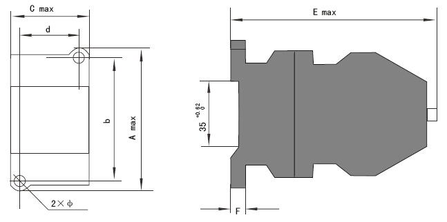 | 型號(hào) | A max | b | C max | d | E max | F | Φ |