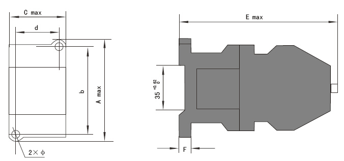 10.1 CJX1-9~140交流接觸器| 型號(hào) | A max | b | C max | d | E max | F | Φ |