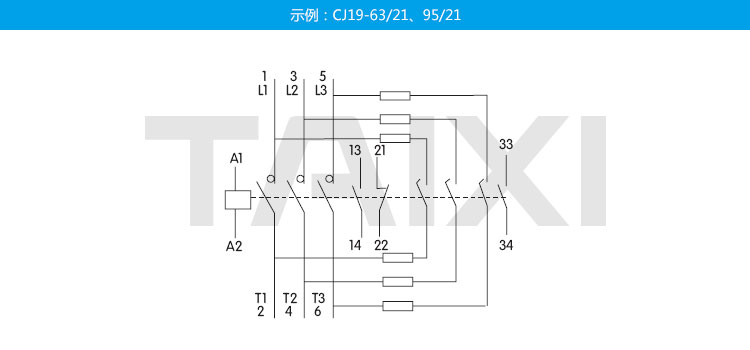 CJ19-25~43的接觸器有兩對輔助觸頭,CJ19-63~95的接觸器有三對輔助觸頭。CJ19-115~170接觸器自帶一對輔助觸頭。