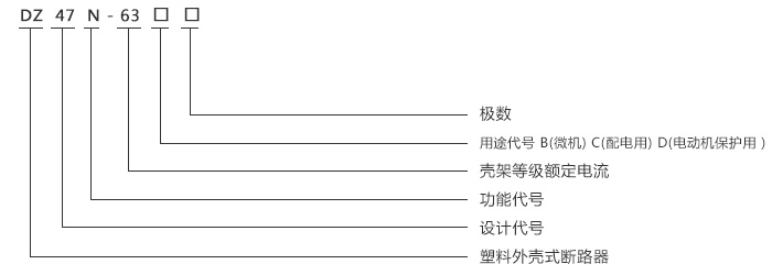 用途代號:B型(電瓶車斷路器); C型(配電用); D型(電動機(jī)保護(hù)用)。