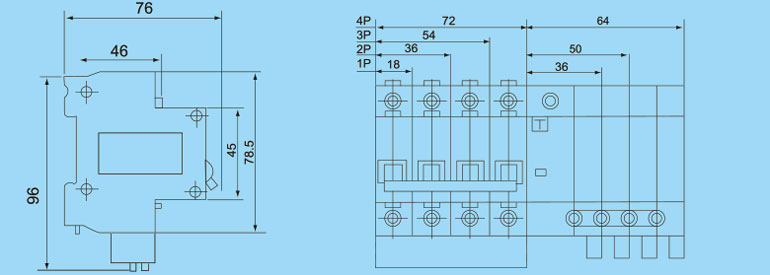 ◇ 額定電壓Un(V):單極兩線、兩極為230V;三極、三極四線、四極為400V;